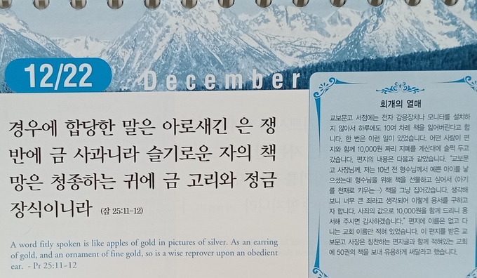 "그러므로 형제들아 내가 하나님의 모든 자비하심으로 너희를 권하노니 너희 몸을 하나님이 기뻐하시는 거룩한 산 제사로 드리라 이는 너희의 드릴 영적 예배니라" -로마서 12장1절