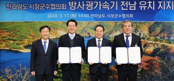 김영록 도지사는 “4세대 원형 방사광가속기를 나주 산학연 클러스터에 유치해 한전공대와 광주·전남북 소재 대학, 지역 기업의 글로벌 경쟁력을 키우겠다”며 “함께 동참해준 전라남도시장군수협의회에 감사드리며 방사광가속기 유치를 위해 총력을 다하겠다”고 말했다.