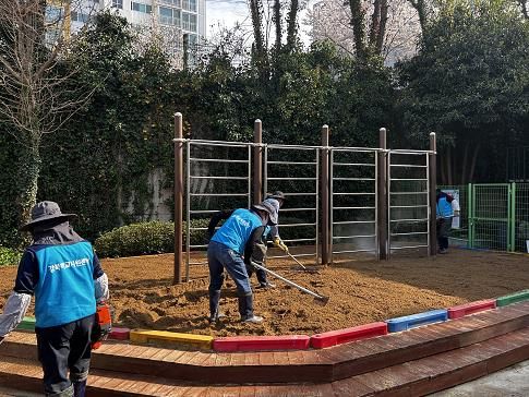 어린이놀이시설 안전을 강화하고자 소독 외에도 정기시설 검사, 기생충란 유무 검사, 모래 교체·보충도 지원하고 있다.