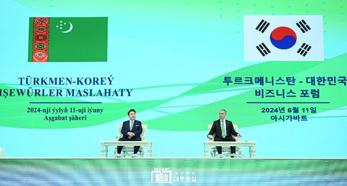 (정도일보) 윤석열 대통령은 11일 오전 투르크메니스탄 상공회의소에서 열린 「한-투르크메니스탄 비즈니스 포럼」에 참석했다. 대통령의 국빈 방문을 계기로 열린 오늘 행사는 대한상공회의소와 투르크메니스탄 상공회의소가 공동으로 개최했다.