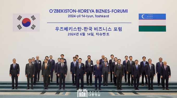 (정도일보) 윤석열 대통령은 6월14일 오후 타슈켄트 시티 콩그레스 홀에서 열린 「한-우즈베키스탄 비즈니스 포럼」에 참석했다. 중앙아시아 3국을 국빈 방문 중인 대통령은 투르크메니스탄, 카자흐스탄에 이어 우즈베키스탄에서도 비즈니스 포럼에 참석해 양국 경제인들을 격려했다.