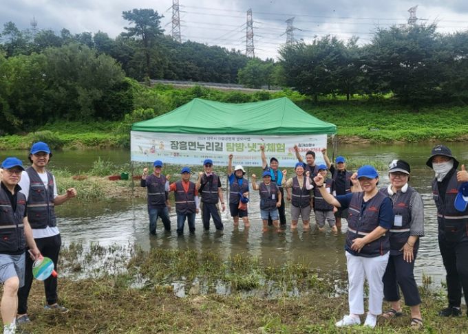 이날 행사에는 장흥면 초등학생과 학부모 60여 명이 참석해 장흥면 누리길 산책 및 탐방 활동을 시작으로, 공릉천 냇가 고기잡이와 물놀이 등 다양한 체험활동을 진행했다.