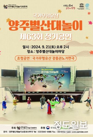 (정도일보) 양주시를 대표하는 국가무형유산 중 하나인 양주별산대놀이 정기공연이 청명한 가을 21일 오후 2시에 양주별산대놀이마당에서 개최된다.