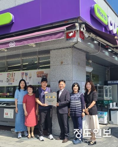 이번 전달식은 ‘복지사각지대 발굴 강화를 위한 협약 현판 지원’ 사업의 일환으로, 현판을 협약기관에 전달하여 지역 내 촘촘한 위기가구 발굴을 강화하기 위한 사업이다. 조진감 점장은 그동안 편의점을 이용하는 아파트 주민들과 신뢰하는 관계를 맺으며, 일상에서 도움이 필요한 주민들을 세심하게 살피고 그들의 어려움을 파악했다.