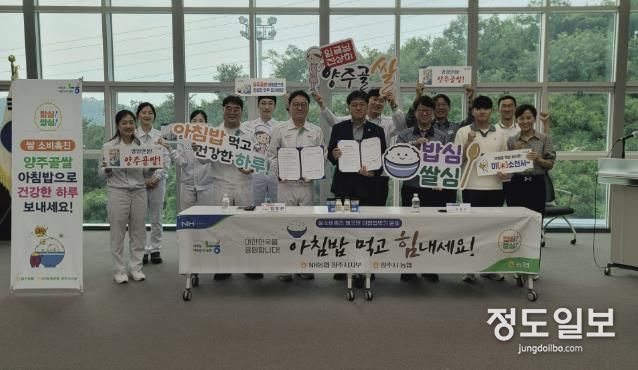 이날 행사에는 서울우유 양주공장 함창본 공장장 및 직원, 오정수 NH농협 양주시지부장, 농협중앙회 농정지원단 직원 등이 참여하여, 범농협'아침밥 먹기 운동'취지 및 양주골쌀 우수성 공유, 쌀소비 촉진을 위한 두기관간 MOU를 체결하였다.