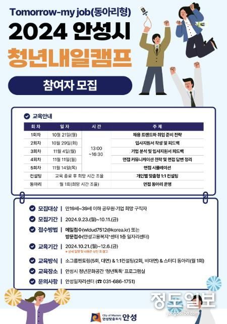 (정도일보) 안성시가 오는 10월 11일까지 2024 안성시 청년내일캠프에 참여할 교육생을 모집한다.