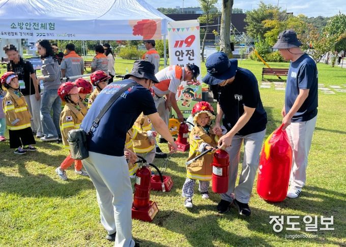 (정도일보) 양주소방서는 지난 25일 양주시 회암사지 일대에서 열린 ‘경기도 유아숲 교육대회’ 행사장 내 영유아를 대상으로 119안전체험장을 운영했다고 밝혔다.