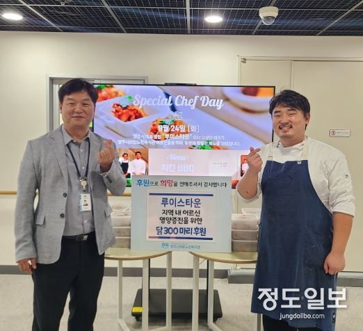이번 행사는 루이스타운 오상민 셰프가 복지관을 방문하여 직접 준비하고 조리한 BBQ 치킨 300마리를 어르신들께 제공하여 큰 호응을 얻었다.