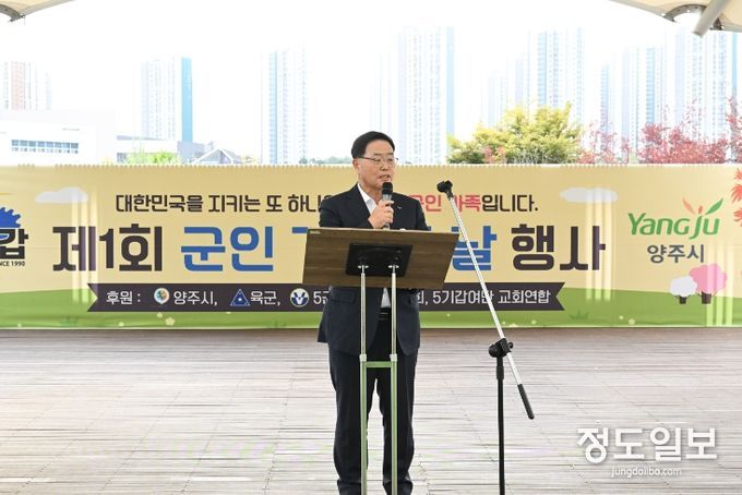 (정도일보) 강수현 양주시장이 최근 옥정호수공원에서 열린 ‘제1회 군인 가족의 날’ 기념행사에 참석해 군인 가족들을 격려하고 감사의 메시지를 전했다.
