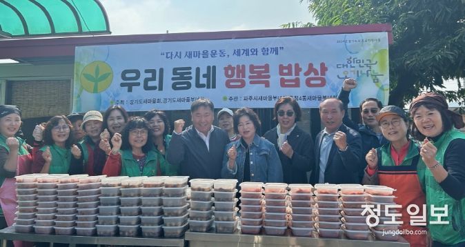 (정도일보) 파주시 운정4동 새마을부녀회는 지난 8일 관내 취약계층을 대상으로 ‘행복밥상 나눔봉사’를 실천했다.