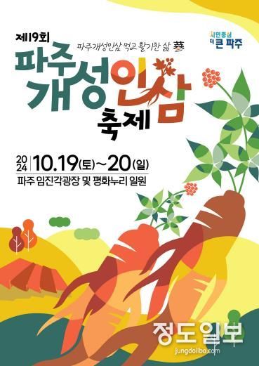 (정도일보) 10월 19일부터 20일까지 파주시 임진각광장에서 ’제19회 파주개성인삼축제‘가 개최된다.