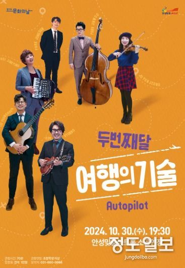 (정도일보) 안성맞춤아트홀은 10월 문화가 있는 날 기획 공연으로 드라마 ‘궁’ OST로 많은 사랑을 받은 밴드 ‘두 번째 달’ 무대를 준비했다. 10월 30일 저녁 7시 30분, 안성맞춤아트홀 소공연장에서 진행되는 이번 무대는 전통 음악 기반의 세련된 음악을 들려주는 ‘두 번째 달’의 연주 무대이다.