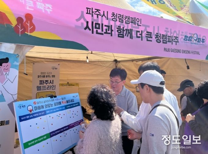 (정도일보) 파주시는 지난 19일 파주시 임진각 일원에서 열린 제19회 파주개성인삼축제에서 감사관 직원들과 시민고충처리위원이 청렴 홍보 캠페인을 실시했다고 밝혔다.