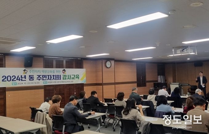(정도일보) 의정부시는 10월 23일 시청 인재양성교육장에서 동 주민자치회 감사와 자치사무원을 대상으로 감사 교육을 실시했다.