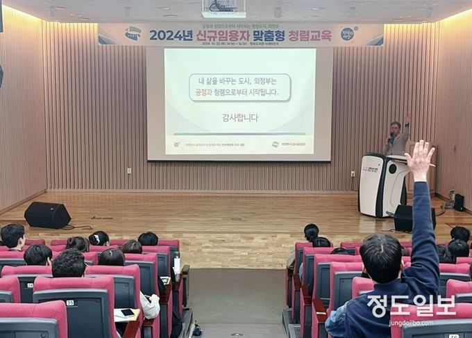 (정도일보) 의정부시는 10월 22일 정보도서관 시네마천국에서 신규 공직자 61명을 대상으로 ‘2024년 신규임용자 맞춤형 청렴교육’을 실시했다.