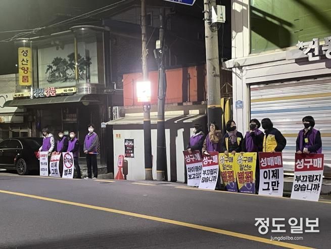 이날 캠페인은 성구매자들이 가장 많이 출입하는 금요일 밤 10시부터 새벽 3시까지 이어졌으며, ‘성매매집결지 폐쇄중’, ‘성구매, 아이들이 보고 있다’, ‘성구매 범죄’ 등의 내용이 담긴 팻말을 들고 성매매가 불법임을 알리는 방식으로 진행됐다.