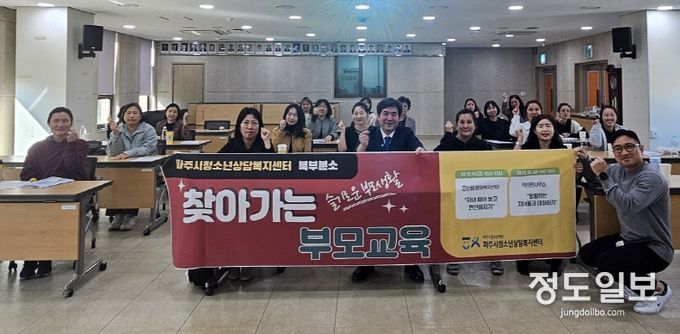 (정도일보) (재)파주시청소년재단 파주시청소년상담복지센터는 지난 10월 18일과 25일 파주시 북부지역의 청소년들이 건강한 발달을 도모할 수 있도록 찾아가는 부모교육 ‘슬기로운 부모생활’을 개최했다.