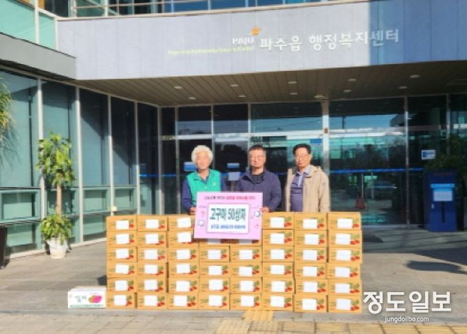 (정도일보) 파주시 파주읍 새마을지도자협의회는 지난 25일 파주읍 행정복지센터에 방문해 어려운 이웃을 돕기 위해 고구마 50상자를 기탁했다.