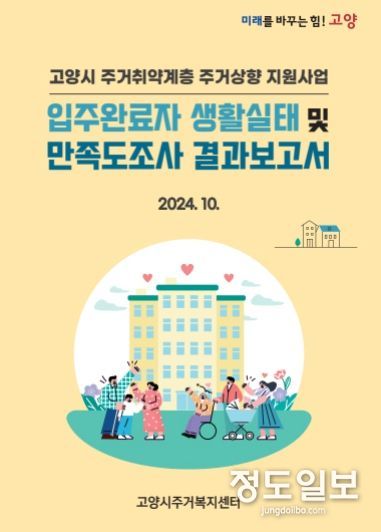 (정도일보) 고양특례시는『고양시 주거취약계층 주거상향 지원사업 입주완료자 생활실태 및 만족도조사 결과보고서』를 발간하고 전국의 주거복지센터 등 주거복지 관련기관 66개소에 배포했다고 밝혔다.