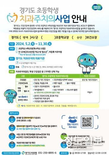 (정도일보) 평택시 송탄보건소는 초등학교 4학년생을 대상으로 하는 2024년 경기도 초등학생 치과주치의 사업의 서비스 종료일이 11월 30일로 다가옴에 따라 아직 검진 서비스를 받지 못한 학생은 서둘러서 혜택을 받길 당부했다.