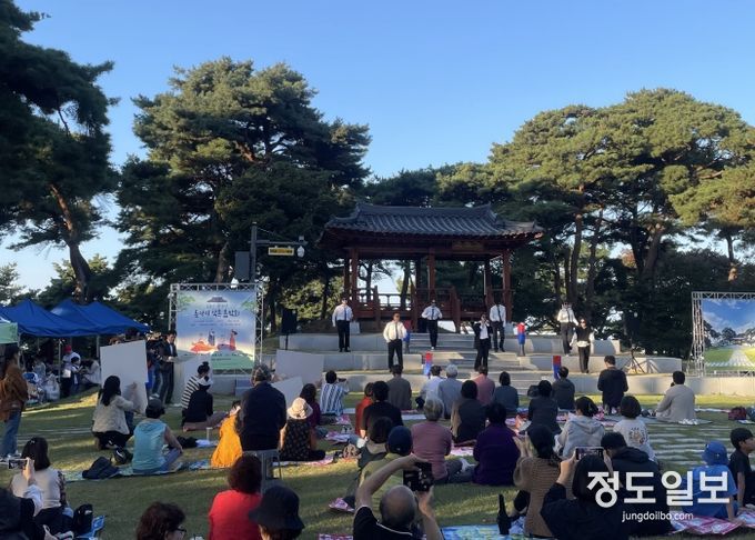 (정도일보) 평택시 팽성읍 주민자치회에서는 지난 26일 부용산 관가정에서 ‘부용산 관가정 돗자리 작은 음악회’를 개최했다. 부용산 관가정 앞마당에서 관객들이 돗자리를 깔고 공연을 즐기는 음악회로 특색있게 진행됐다.