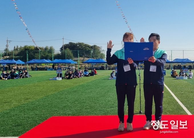 올해 14회째를 맞은 이날 체육대회는 축구, 족구, 3인 4각, 단체줄넘기, 계주 등 다섯 개의 정식종목과 피구, 공굴리기, 경품낚시 등 세 개의 번외 경기로 면민 화합을 이뤘고 지역 가수 공연, 마을 노래자랑 등 다채로운 프로그램이 진행됐다.