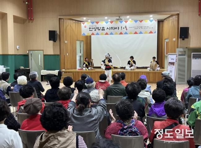 이번 ‘안성맞춤 사자야’는 사물판굿, 사자탈춤, 대동놀이 및 버나놀이까지 다채로운 전통 기예를 담아 어르신들과 소통하고 함께 춤추고 손뼉 치며 긍정 에너지를 전달 하는 무대로 진행됐다.