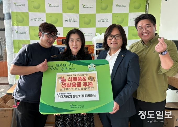 (정도일보) 평택북부장애인복지관은 10월 30일 현대자동차 송탄지점 김재원 후원자로부터 각종 식료품 및 생활용품을 후원받았다.