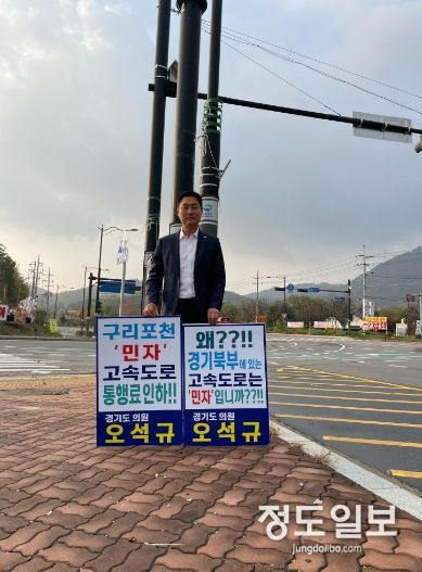 (정도일보) 경기도의회 문화체육관광위원회 오석규 의원(더불어민주당, 의정부4)은 11월 1일, 4일 구리-포천 고속도로 통행료 인하와 요금 체계 개선을 요구하며 1인 피켓 시위를 진행했다.