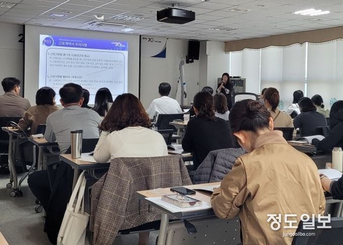 (정도일보) 김포시는 지난 30일 김포아트홀 세미나실에서 관내 기업체 사업주 및 인사담당자 25명을 대상으로 근로기준법 교육을 실시했다.