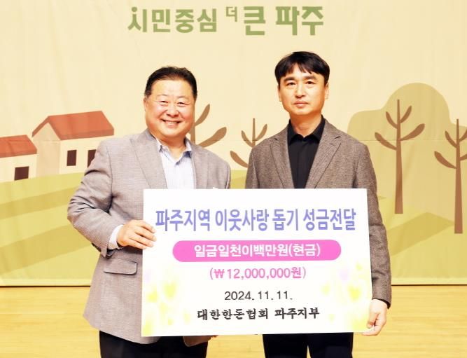 (정도일보) 대한한돈협회 파주지부에서는 제29회 농업인의 날(11.11.)을 맞아 어려운 이웃을 돕기 위한 성금 1,200만 원을 파주시에 기부했다.