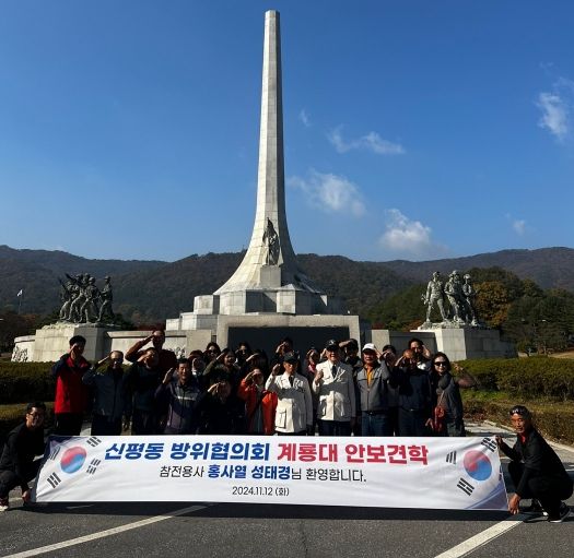 이번 안보 견학에는 신평동 방위협의회 위원, 신평동 예비군 동대장, 관내 6․25 참전용사 등 30명이 참가했으며, 육·해·공 3군 본부가 위치한 국방의 중심지 계룡대를 방문해 육군 기록전시관, 명예의 전당을 견학하고 병영 식사, 군복 착용 및 사격 체험 순으로 진행했다.