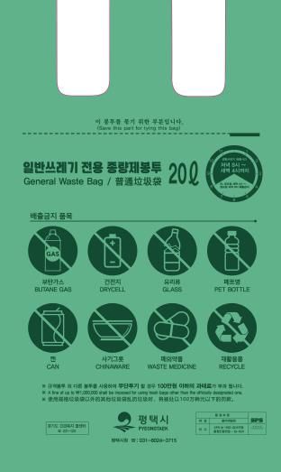 현재 판매 중인 일반용 및 재사용(쇼핑) 종량제봉투는 흰색에서 초록색으로 변경됐고 음식물용 봉투는 기존 주황색을 유지한다. 이는 재활용품을 넣은 봉투와 종량제봉투의 구분이 어려웠던 점을 개선해 분리수거에 도움이 될 것으로 기대한다.