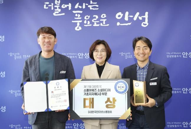 [정도일보 김선자 기자] 안성시는 한국언론진흥재단 프레스센터에서 개최된 ‘제17회 대한민국 소통어워즈’에서 15회, 16회에 이어 ‘기초자치단체 부문 소셜미디어 대상’을 3년 연속 수상했다.