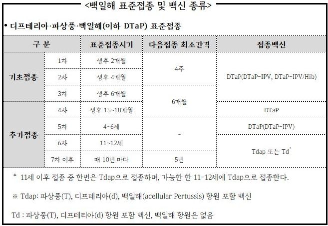 따라서 백일해에 감염돼 주변 친구, 나이 어린 형제자매들에게 전파할 우려가 높은 미접종자나 총 6회의 접종을 완료하지 않은 불완전 접종자는 신속하게 접종하는 것이 중요하고, 아이를 돌보는 조부모 등의 경우에도 아이와 접촉하기 최소 2주 전에 백일해 백신(Tdap)의 적극적인 접종이 필요하다.