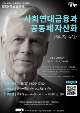 이번 특강에서는 크리스 도브르잔스키 커뮤니티포워드 재단 이사장이 강사로 나서 ‘사회연대 금융과 공동체 자산화’라는 주제로 강의를 진행한다.