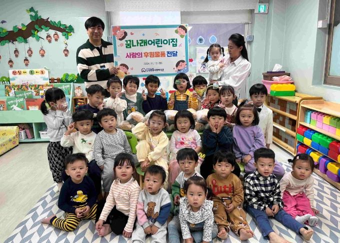 이번 후원물품은 꿈나래어린이집 원생들이 텃밭에서 키운 작물로 시장놀이를 하여 나온 수익금과 꿈나래 어린이집 선생님들의 기부금을 토대로 마련됐다.