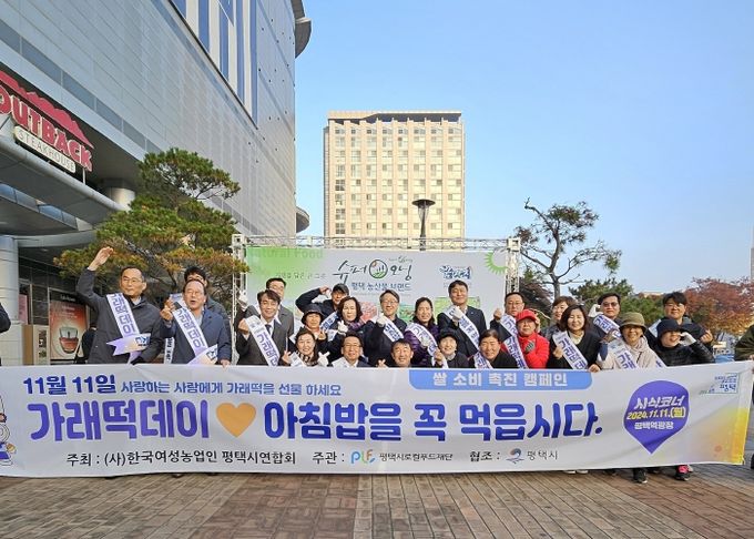 이번 행사에는 임종철 평택시 부시장, 지역농협, 농업 관련 단체 등이 참석해 시민들에게 농협에서 제공한 ‘꿈마지’ 쌀로 만든 가래떡을 나누며 ‘아침밥을 꼭 먹읍시다’ 구호로 평택시 쌀 소비 촉진 활성화 캠페인을 펼쳤다.