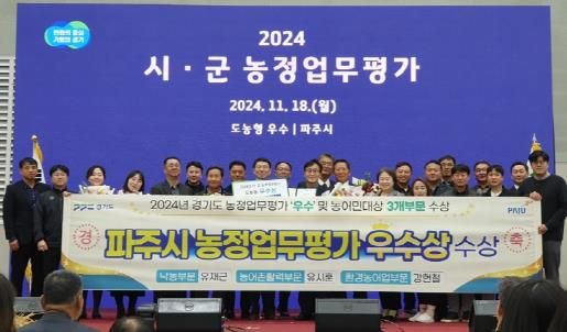 파주시는 농지대장정비, 농민기본소득, 농업인력지원, 친환경농산물 생산확대, 축산선진화 추진, 농산물 직거래 분야 등에서 우수한 성과를 인정받아 1,000만 원의 시상금과 경기도지사 표창을 수상했다.