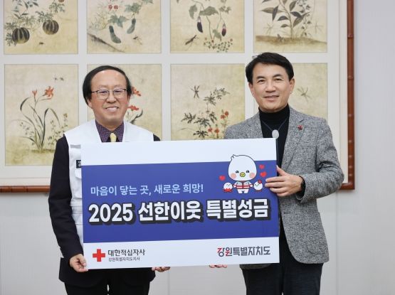 (정도일보) 강원특별자치도는 12월 2일 도청 통상상담실에서 대한적십자사 강원특별자치도지사에 2025년도 적십자 특별회비를 전달하고, 고액 기부자들에게 감사의 뜻을 담아 도지사 감사패를 수여했다.