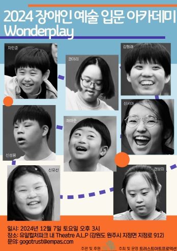 이번 공연은 '2024 장애인 예술입문 아카데미 운영 지원' 사업의 일환으로 진행되며, 원주 지역 문화예술단체인 트러스트아트프로덕션(대표 김형희)이 주관한다.