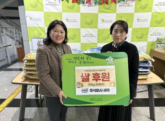 (정도일보) 평택북부장애인복지관은 12월 9일 주식회사 세우로부터 지역사회 장애 당사자 및 장애인 가정의 식생활 지원을 위한 백미 10kg 30포대를 후원받았다.