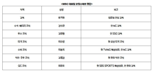 (정도일보) 2026년 3월 개최되는 2026 WBC에서 류지현 감독을 보좌할 대표팀 코칭스태프의 명단이 확정됐다.