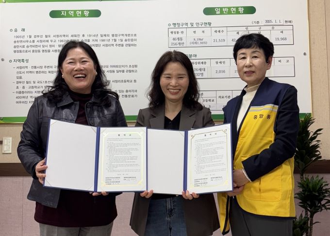 왼쪽부터 유영애 관장, 허명경 중앙동장, 권오미 위원장
