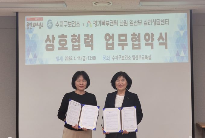 (정도일보) 용인특례시 수지구보건소는 지난 11일 경기북부권역 난임‧임산부 심리상담센터와 ‘심리지원 서비스 강화를 위한 업무 협약’을 체결했다고 13일 밝혔다.