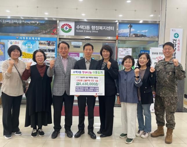 (정도일보) 구리시 수택3동행정복지센터는 수택3동 기간단체 회원들이 영남 지역 산불 피해 주민들을 돕기 위해 구호 성금 563만 원을 사회복지공동모금회에 기탁했다고 18일 밝혔다.