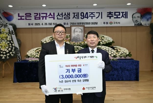 (정도일보) 구리시는 지난 20일 구리시 출신 독립 유공자인 ‘노은(蘆隱) 김규식(金奎植) 선생’의 후손으로부터 지역 내 저소득 취약계층을 위한 기부금 300만 원을 전달받았다.
