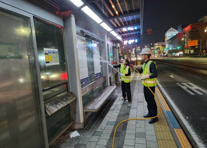 구는 미세먼지로 오염된 버스정류장 지붕, 의자 등을 고압세척기를 이용해 세척하고, 눌어붙은 먼지나 오염물질을 제거하는 등 승강장의 전체적인 환경 정비를 마쳤다.
