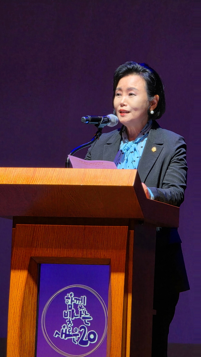 정윤경 부의장은 축사를 통해 “경기여성가족재단은 지난 20년간 여성, 가족, 청소년, 돌봄 등 도민의 삶과 밀접한 영역에서 실질적인 정책 기반을 다져왔다”며, “현장에서 묵묵히 헌신해 온 재단의 노력에 깊은 감사를 전한다”고 말했다.