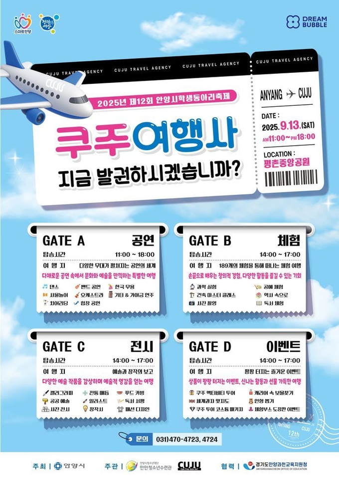[정도일보 김현섭 기자] 안양시는 제12회 안양시학생동아리 축제를 만안청소년수련관 주관으로 오는 13일 평촌중앙공원에서 개최한다고 2일 밝혔다.